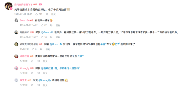 冯先生自己也透露,关于使用成本确实算过,省了十几万油钱。
